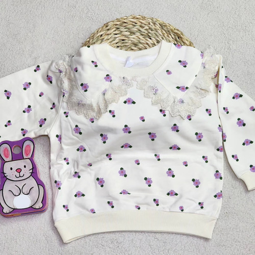 بلوز دورس دخترانه وارداتی طرح گل گلی یقه ب ب گیپور کد 1117