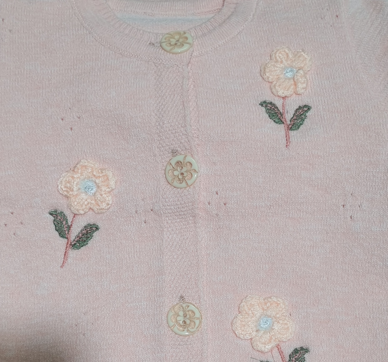 ژاکت بچگانه بافتنی دکمه دار طرح گل برجسته و گلدوزی شده سیبافت 1220