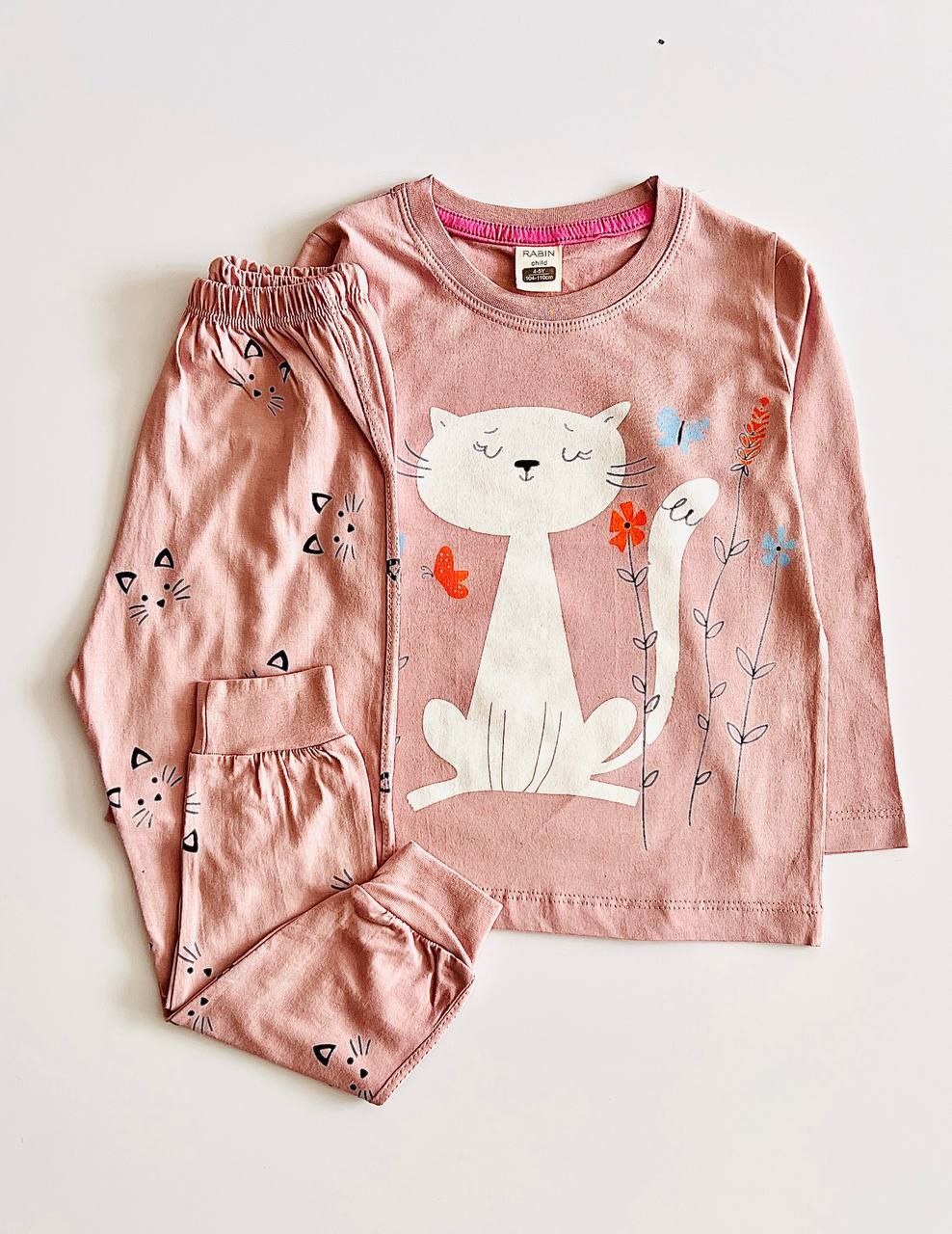 ست بلوز شلوار دخترانه صورتی گربه کد 1232