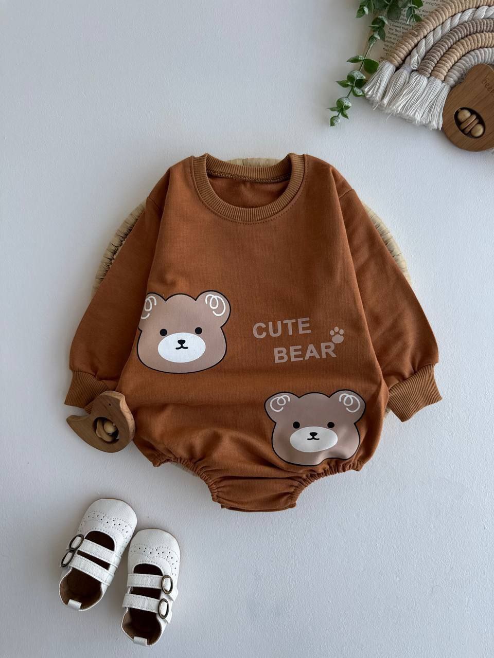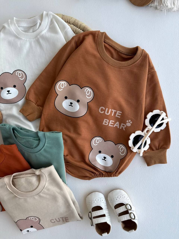 بادی آستین بلند طرح تدی چاپی نوزادی کد 1234