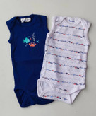 ✨بادی رکابی سورمه ای طرح ماهی و خرچنگ 🦀🐟