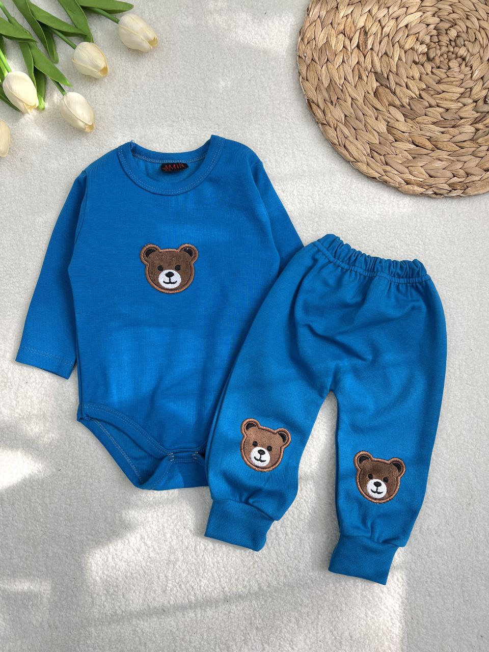 📏 سایزبندی بادی آستین بلند و شلوار تدی گلدوزی : از 3 تا 24 ماه