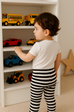 راهراه، شیک، راحت… همون شلواری که هم برای بازیهای پرشی، هم برای استایل مرتبِ خونه عالیه 🤍🖤