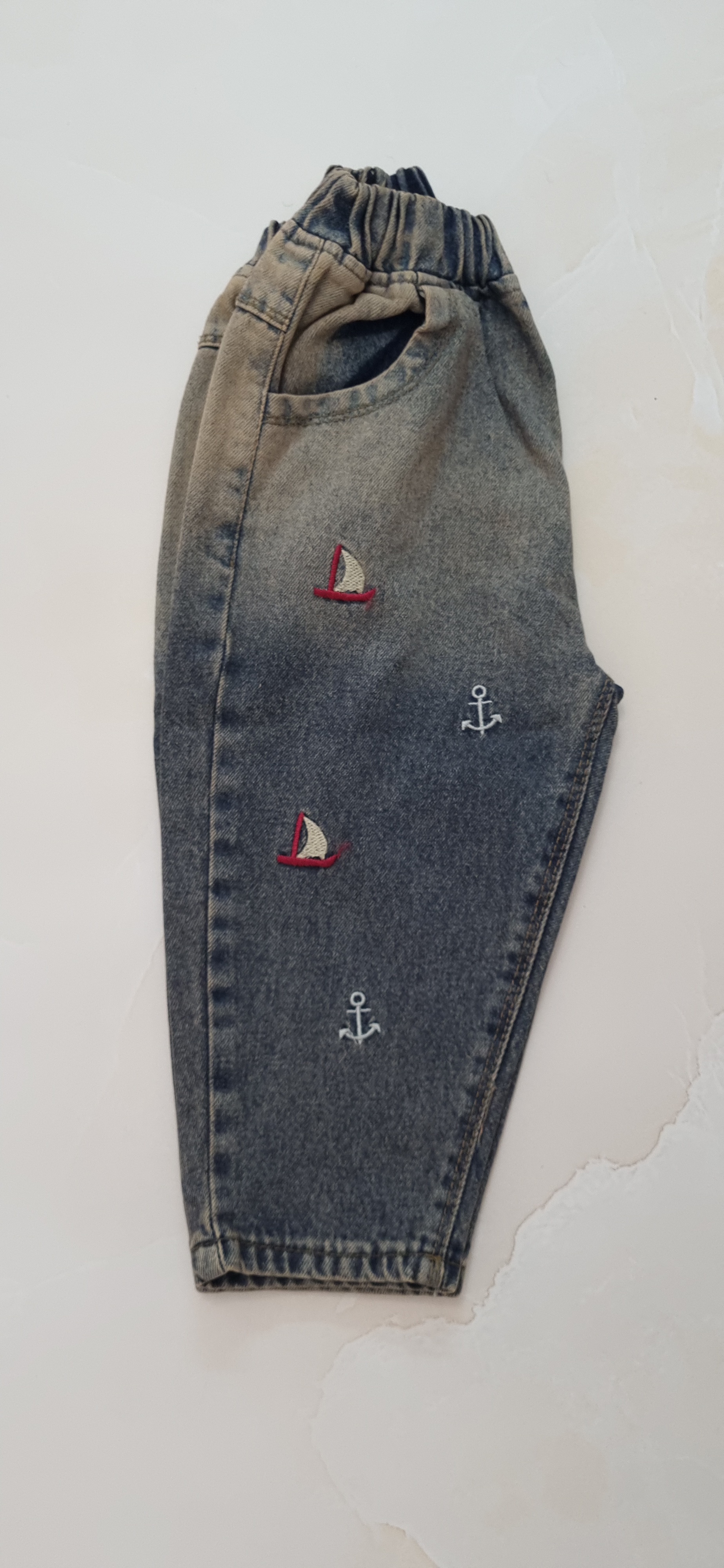 شلوار جین نوزادی تا ۳ سال طرح قایق کد ۱۲۶۷