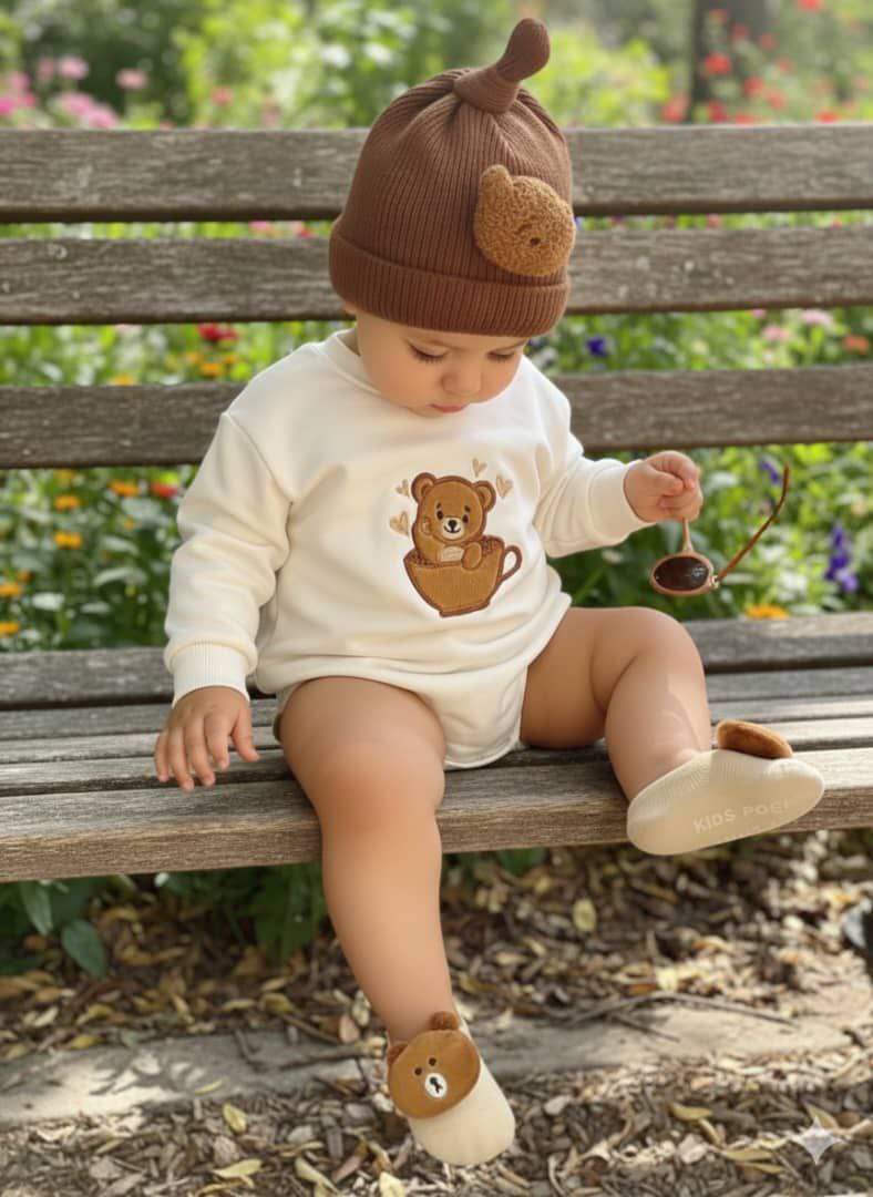این بادی بچگانه با پارچه دورس نرم و باکیفیت، دوخت تمیز و گلدوزی برجسته طرح خرس داخل فنجون، هم راحتی نینی رو تضمین میکنه هم استایلش رو چند برابر بانمکتر 🐻☕️