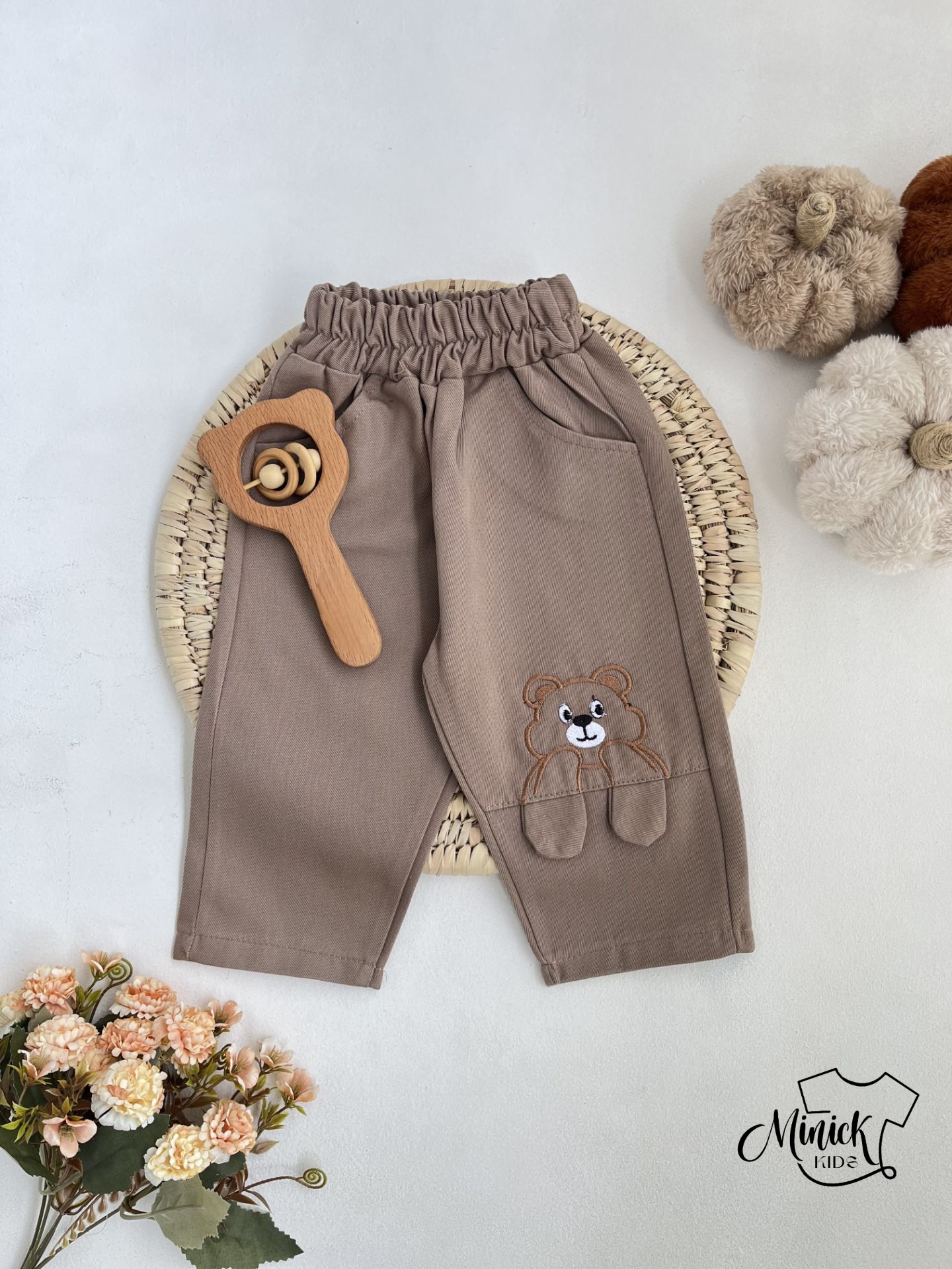 💫شلوار کتان پنبه گلدوزی شده خرسی با کمر کشی نرم و راحت بهترین انتخابه برای کوچولوی دلبندتون 🐻👌