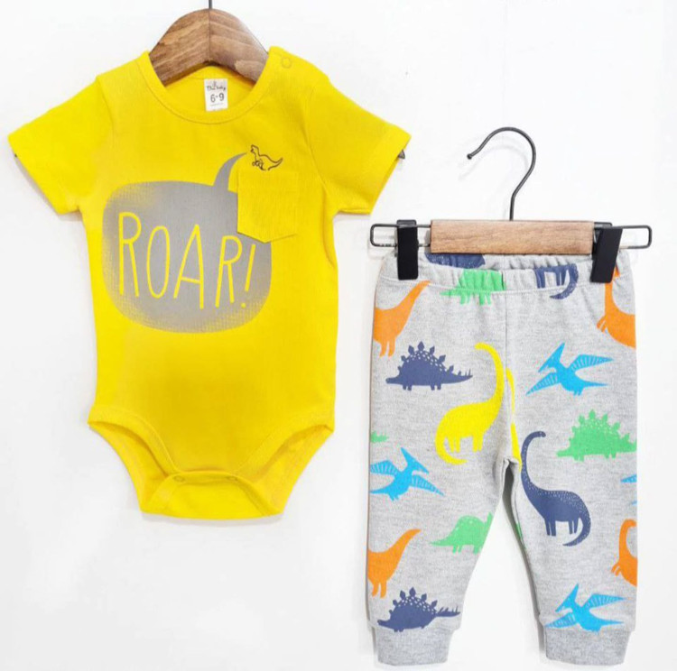 ست بادی شلوار بی بیبی طرح دایناسور نوزادی کد 1120