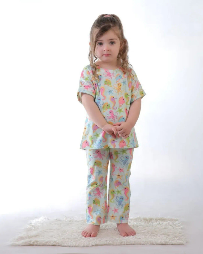 تیشرت شلوار بوتکات دخترانه جامک طرح دریا کد 1123