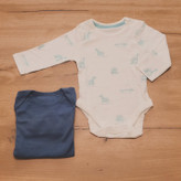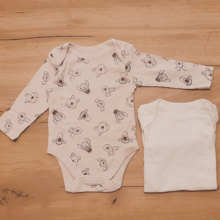 خرس پو کرم رنگ و دایناسور سفید برند جرج تا ۸ کیلو : قد آستین ۲۱، پهنا ۲۲، قد سرشانه تا فاق ۳۶