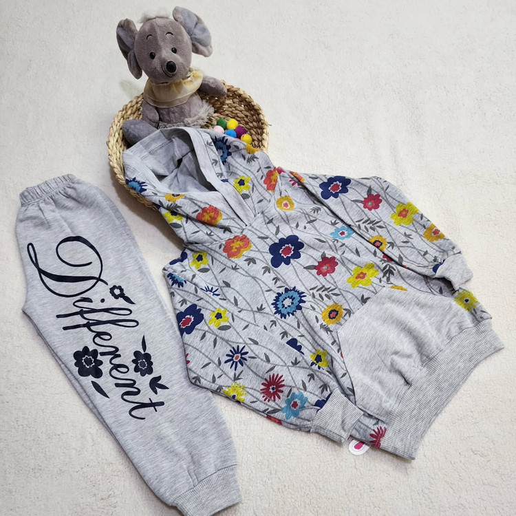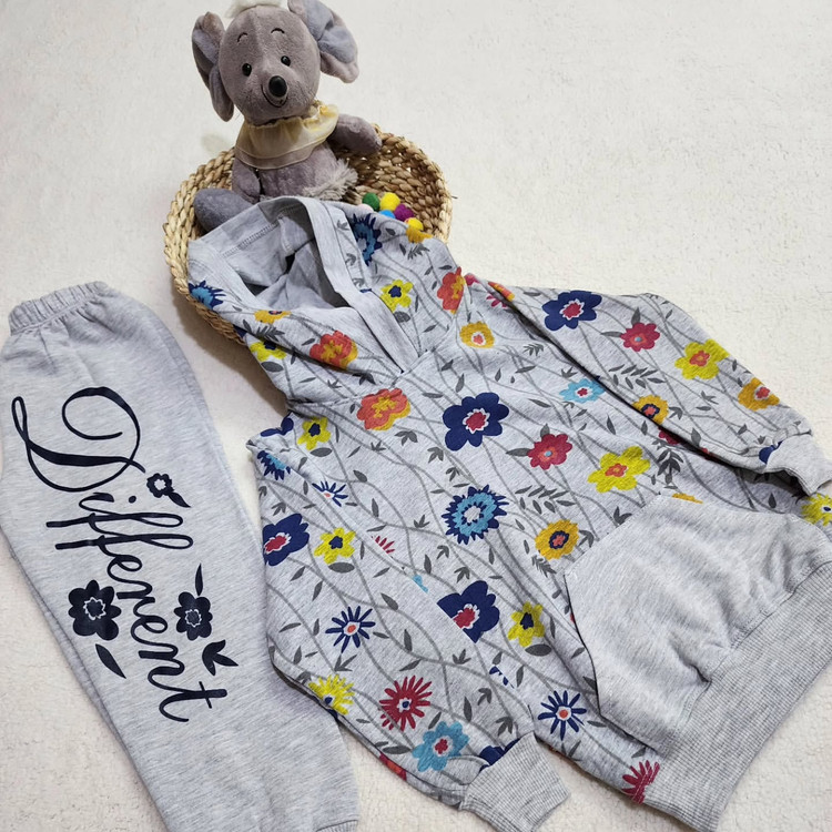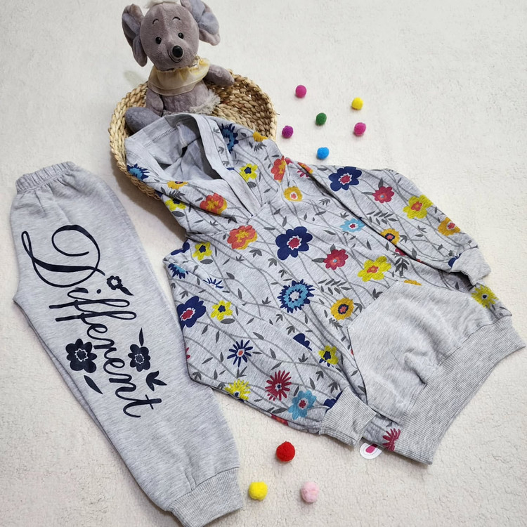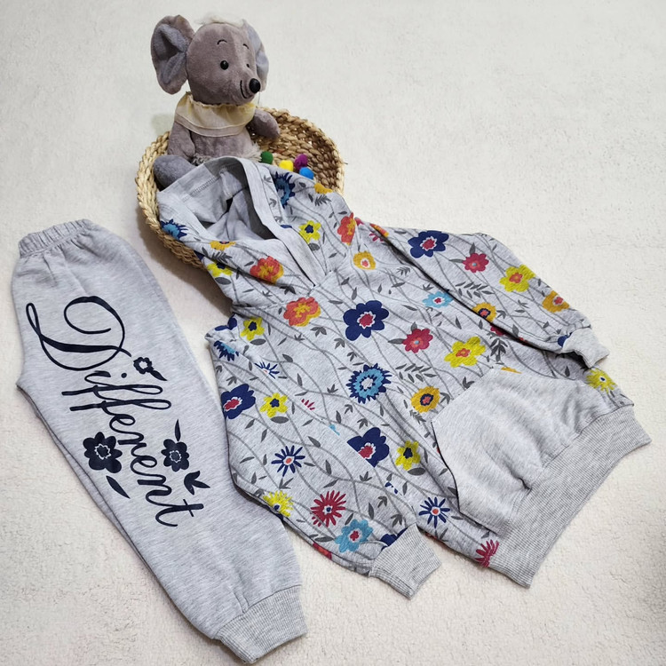 ست هودی شلوار طوسی گل دار بچگانه کد 1170