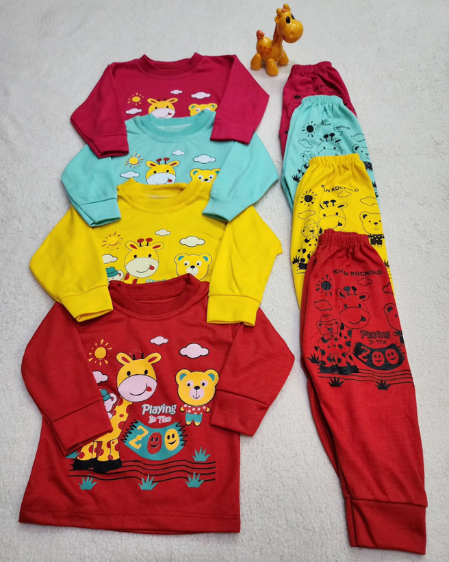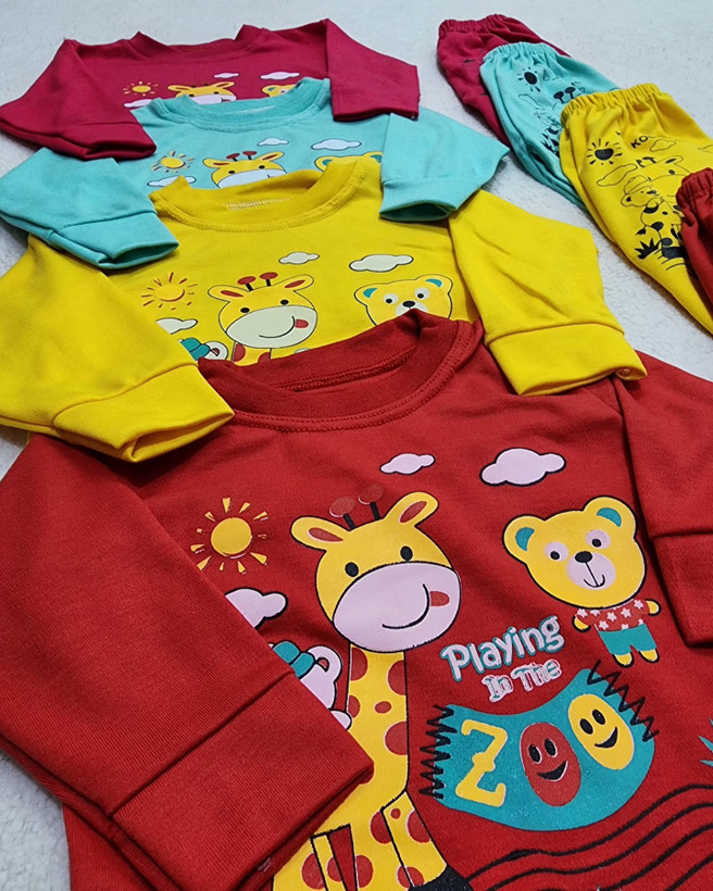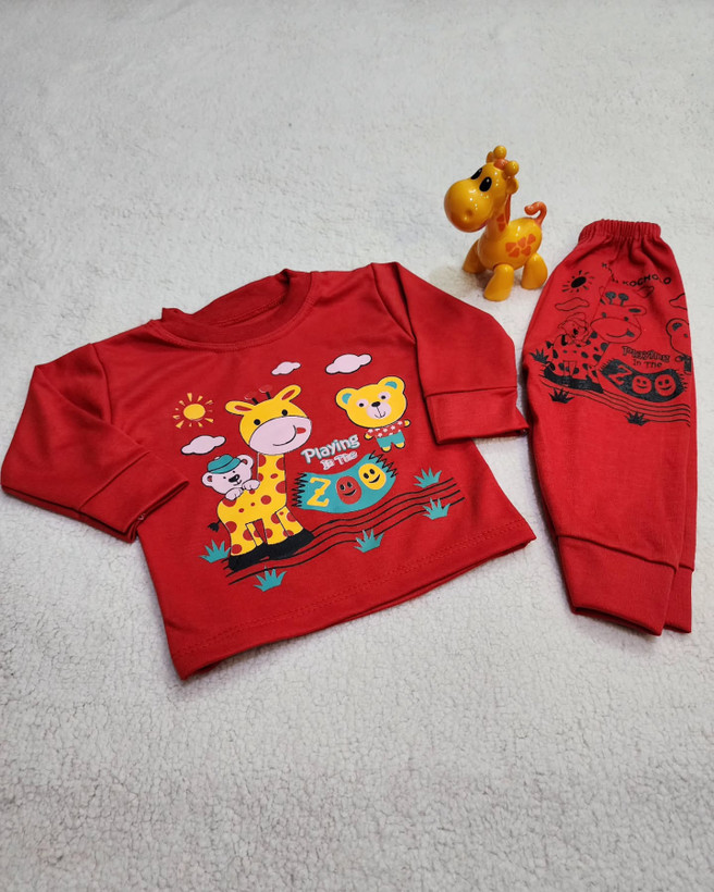 بلوز شلوار نوزادی طرح باغ وحش کد 1169