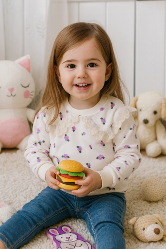 بلوز دورس دخترانه یقه گیپوری طرح گل گلی 1117
