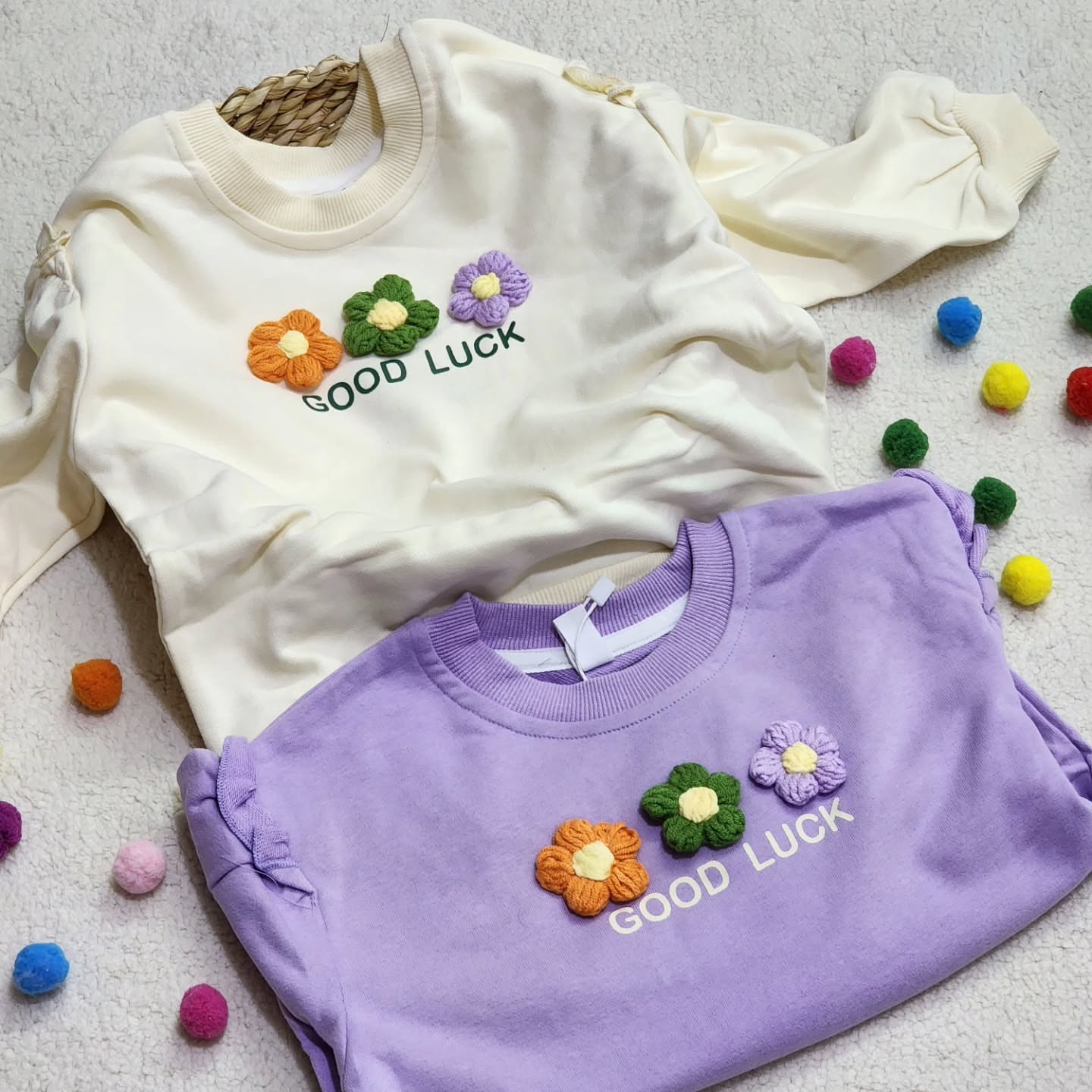 بلوز دورس ضخیم وارداتی سه گل برجسته سرشانه چین دار دخترانه 1181