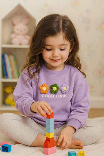 بلوز دورس ضخیم وارداتی سه گل برجسته سرشانه چین دار دخترانه 1181