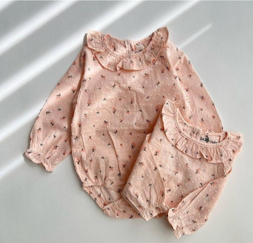 بادی مجلسی دخترانه سوکیوت طرح گلدار برجسته نوزادی کد 1108